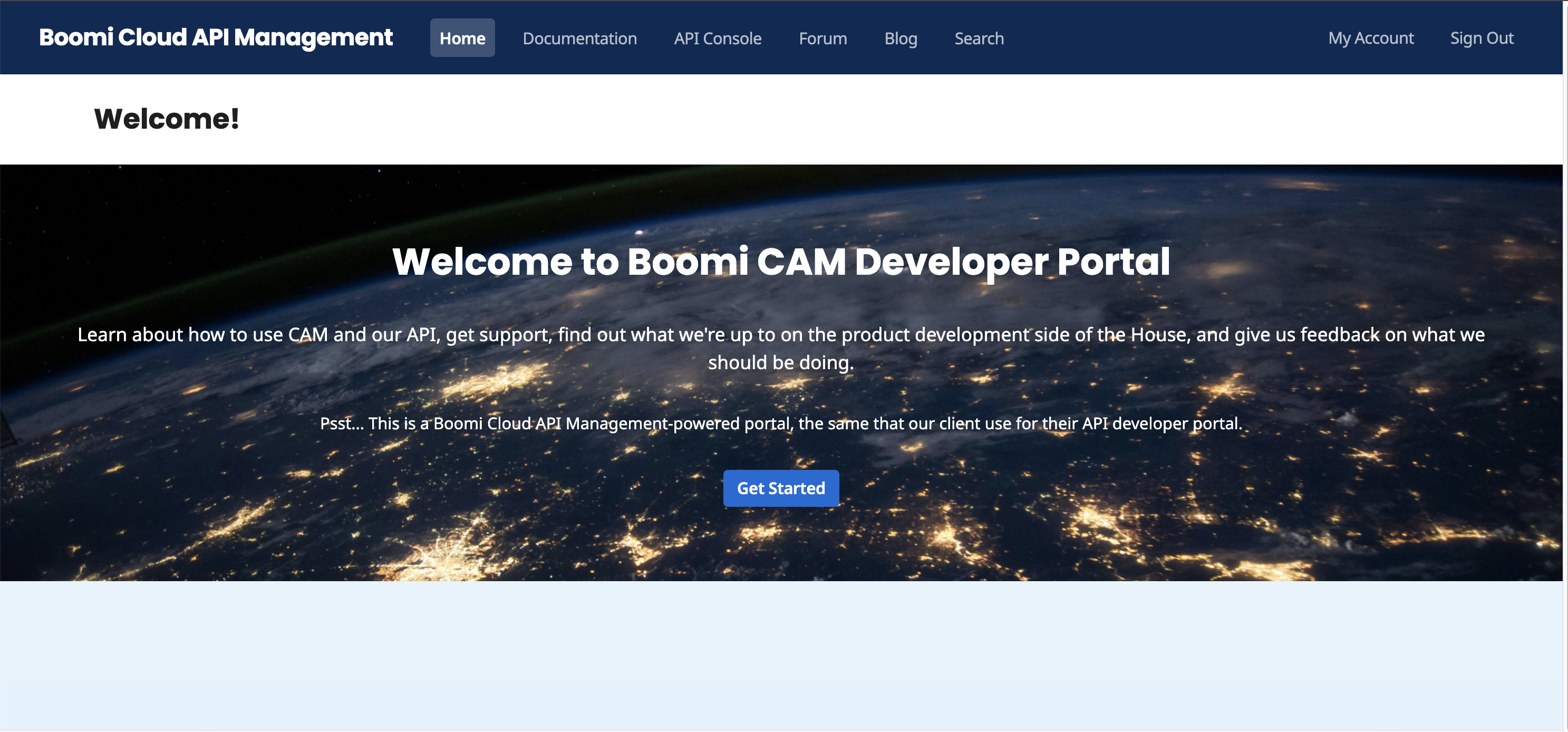 Click the square icon at the top right corner of the Cloud API Management and select Developer Portal. This opens the Boomi Enterprise Platform-enabled Developer Portal.