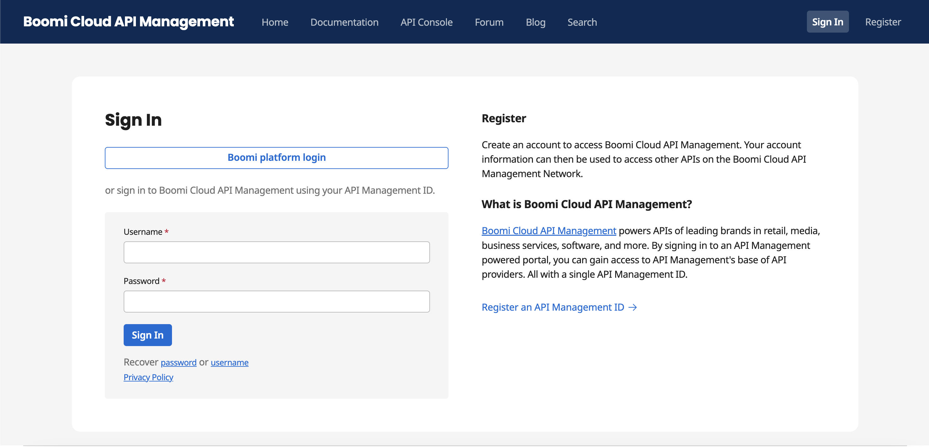 Signing in to Cloud API Management via Boomi Enterprise Platform enabled login