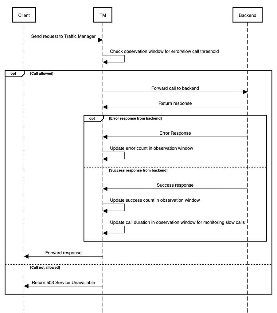 Design and Implementation Sequence Diagram Error Messages Error NameError MessageHTTP Status CodeCause503 Service UnavailableService Unavailable503Circuit trips when the response value exceeds the configured threshold value.