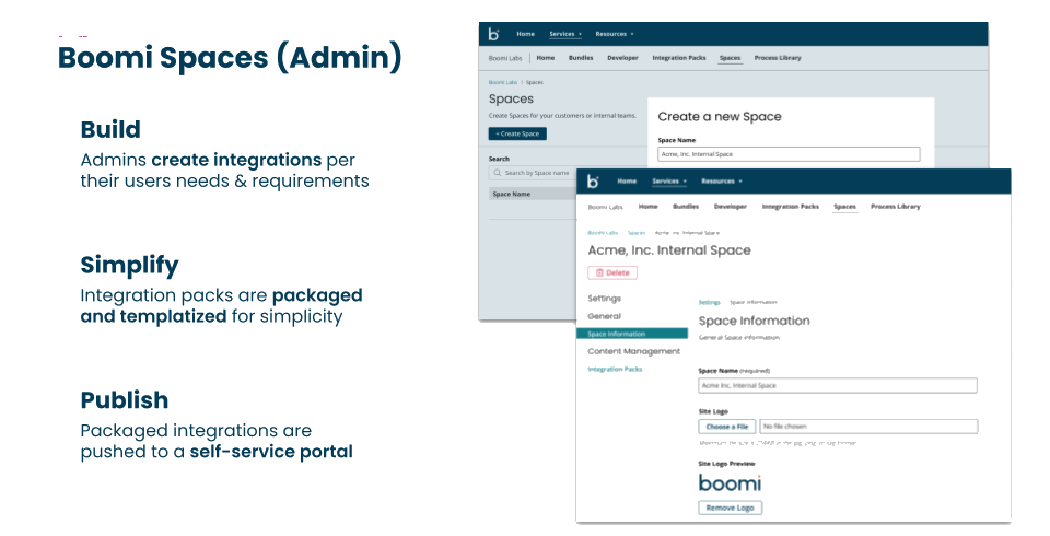 As a Space administrator, you can create, manage, and deploy integrations tailored to the needs of your users. Your responsibilities include developing integrations, packaging and templating them, and publishing these packages to a self-service portal, where users can easily access and utilize them.