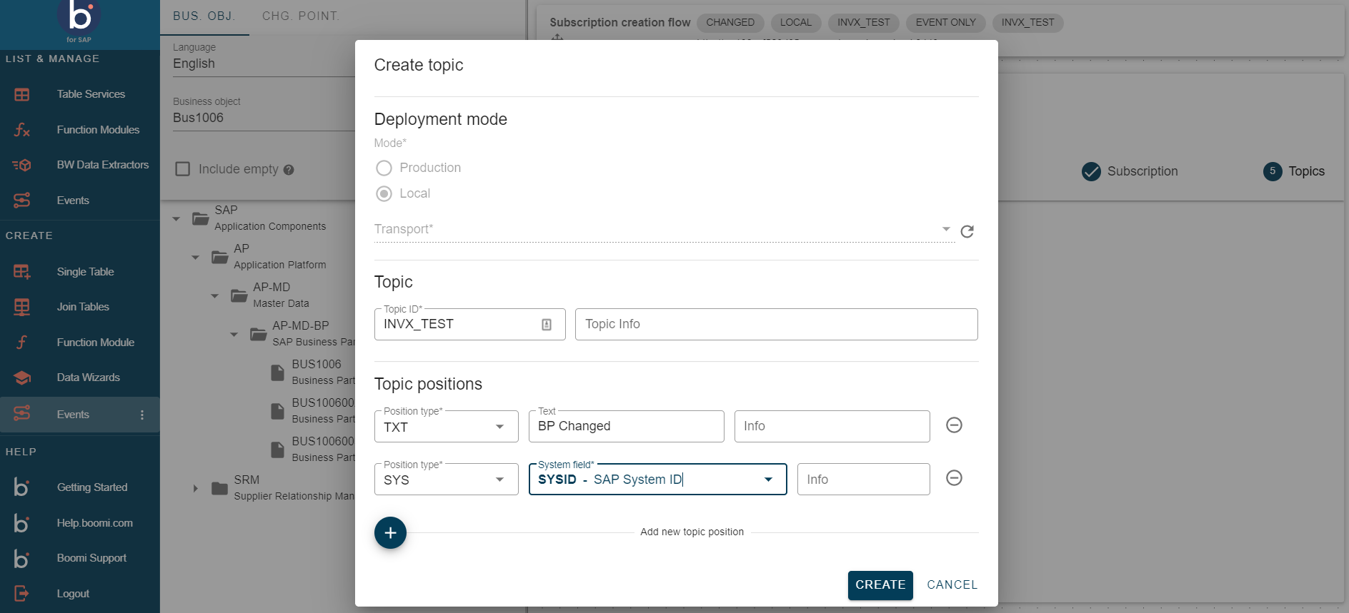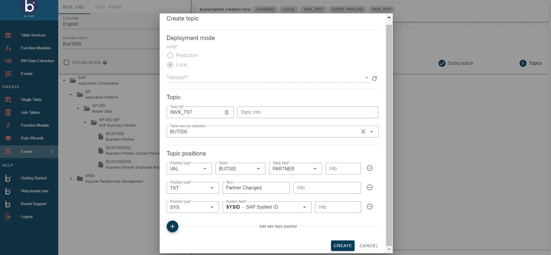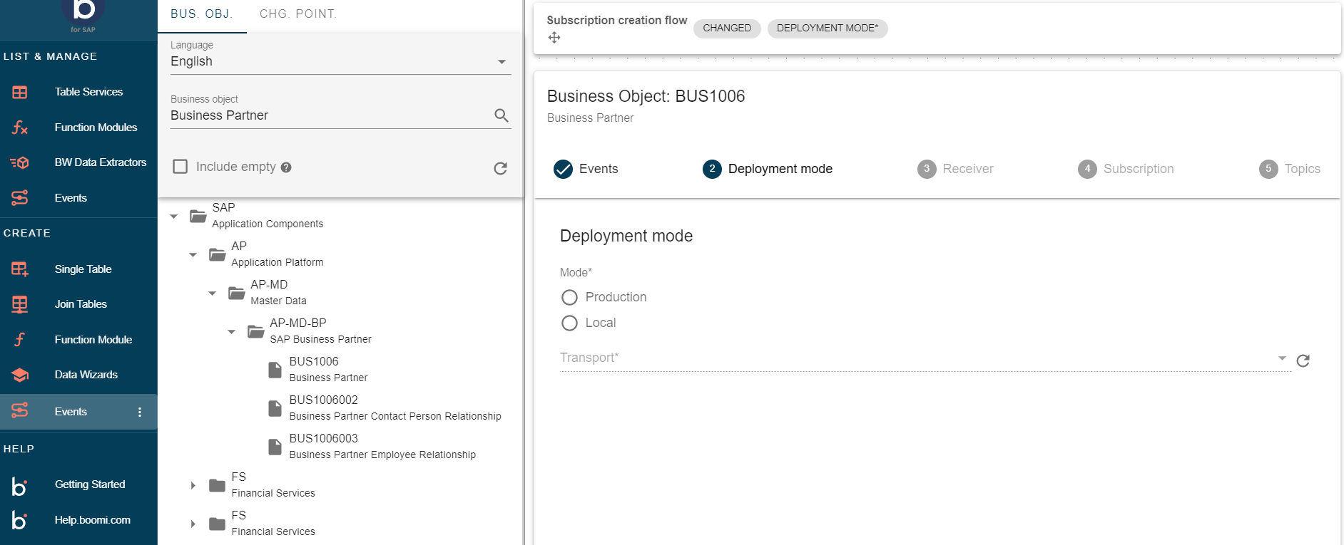 Adding Event Filters: You can add event filters that uses metadata from the event itself to determine if the event should be handled. These filters can examine the table key(s) in change pointer events or the fields from a business object event. Learn more about how Boomi for SAP manages Buisness Object Event and Payload Filtering.