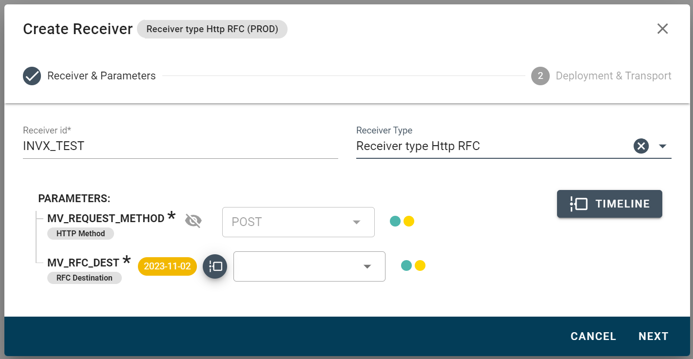 The receiver is responsible for defining the connection of your event. You can either choose an existing receiver or create a new one.
