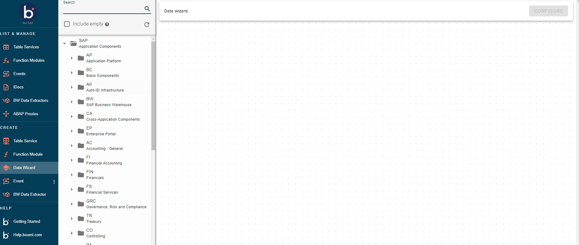 To access the Data Wizard, go to the main page and click on Data Wizards under CREATE. This will direct you to the Data Wizards page, where you can explore a variety of SAP BAPIs.