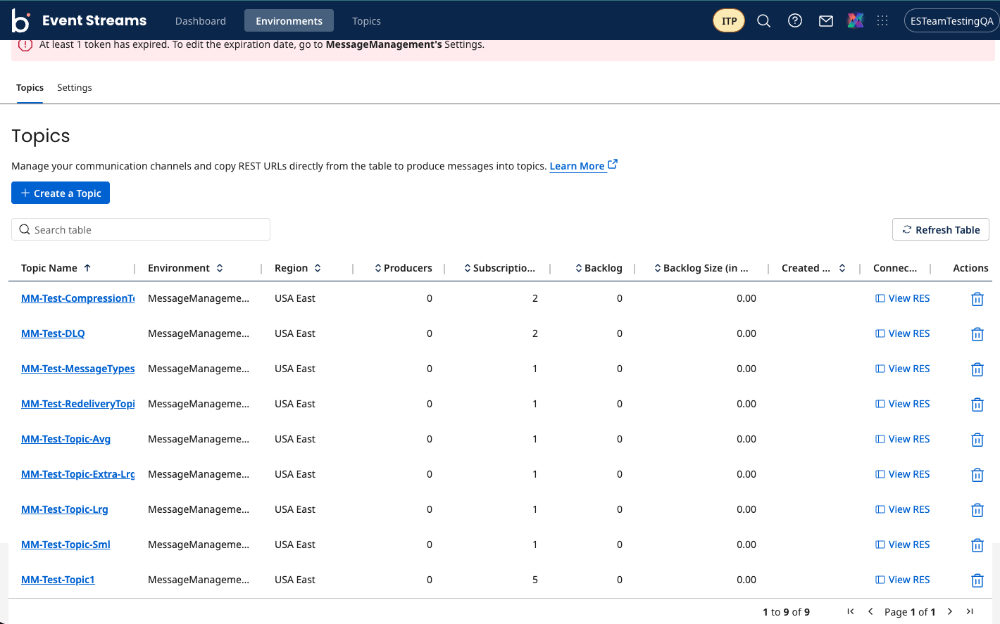 The Event Streams connector uses a JWT token for authentication and authorization. To retrieve tokens navigate to the Environments page in Event Streams, then switch to the Settings tab.