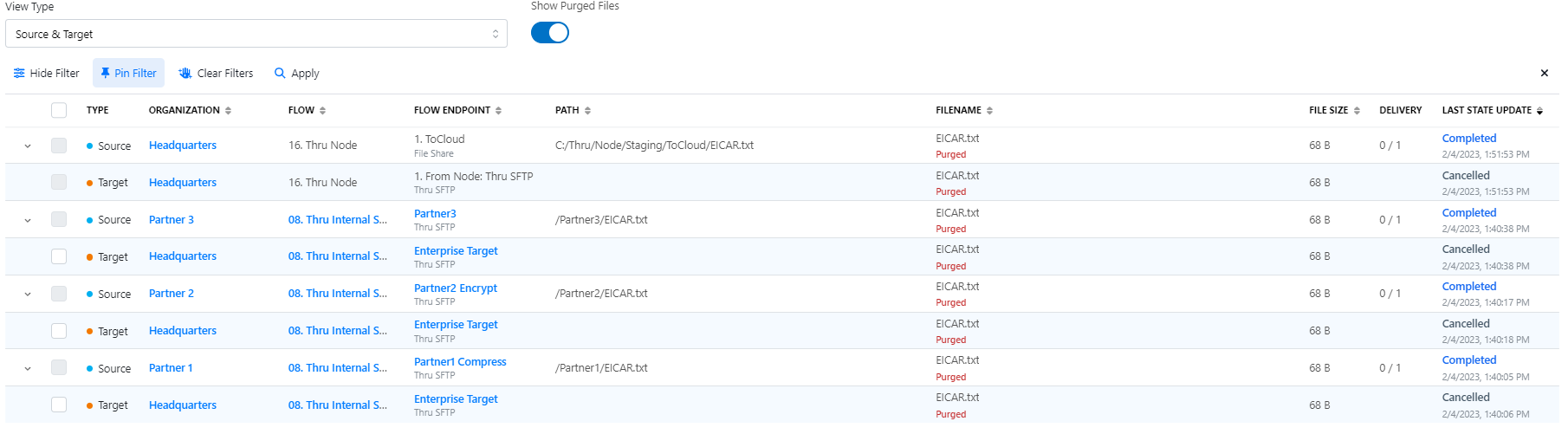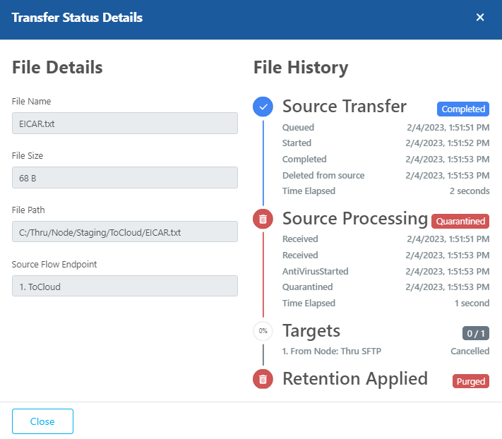 Looking at the Transfer Status Details will show the Quarantined state.
