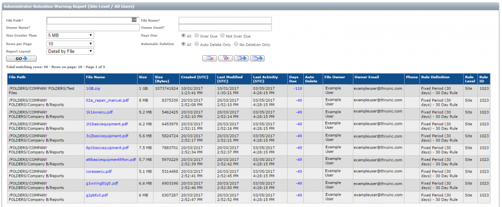 You have the several filtering options to narrow down the list by focusing for example, file size, files that are overdue, or file path.