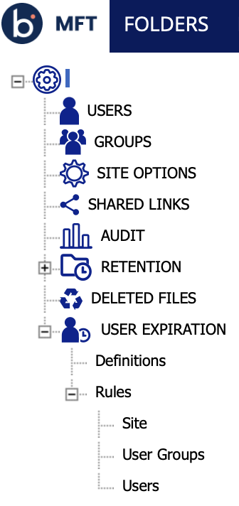 - Rules -> User Groups: View and remove expiration rules assigned to user groups. Available to Administrator and Manager roles.